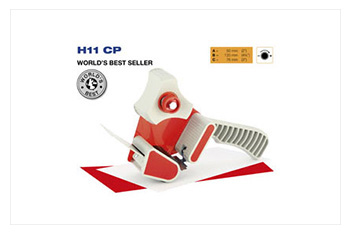 Distributori impugnabili per nastri autoadesivi da imballo.